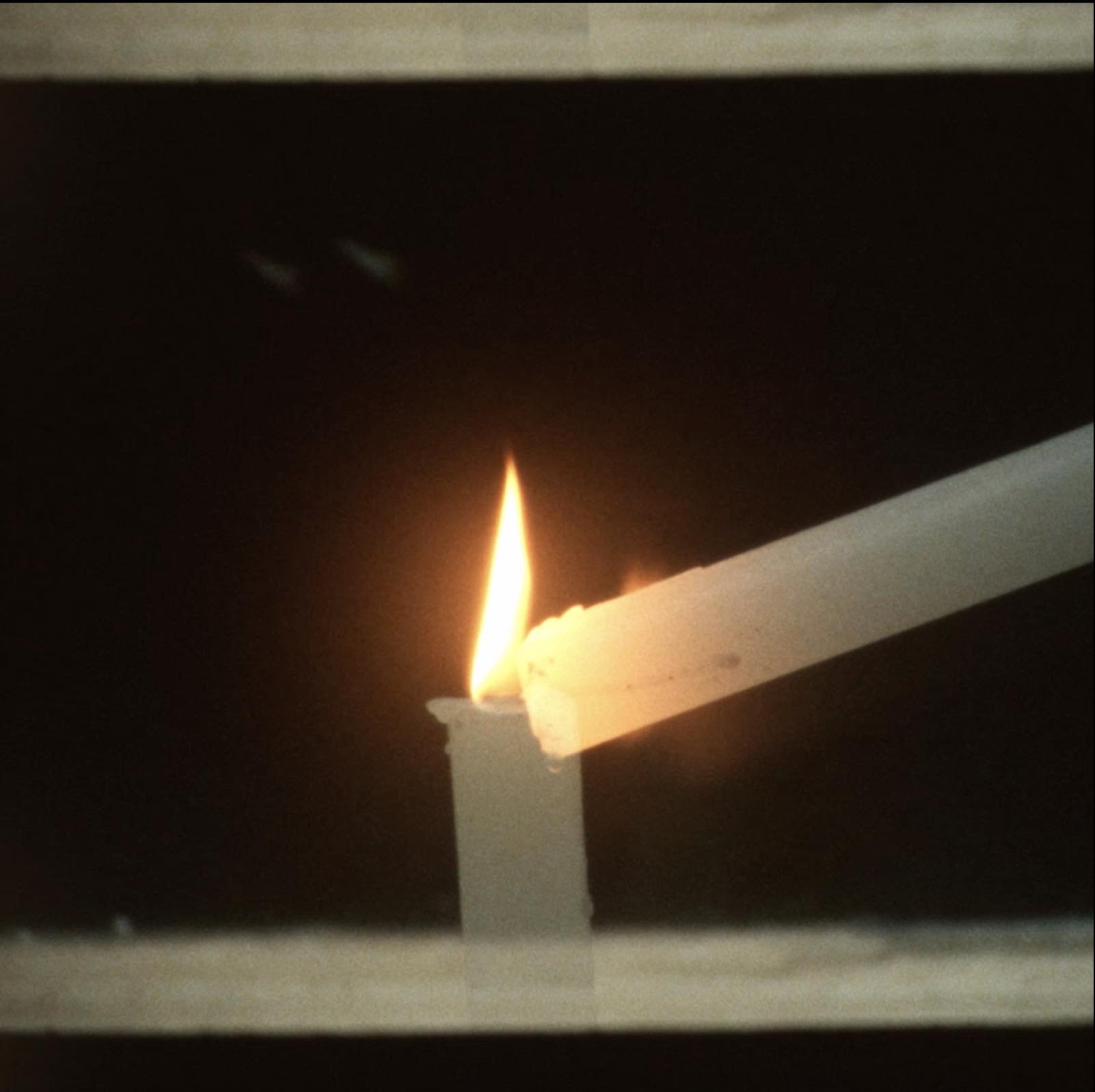 This is a film installation shot on 16mm film and projected inside a box. The most striking scene depicts a candle attempting to light another. In reality, because the image is created through multiple exposure, the two candles never exist in the same place or at the same time. However, on the film as a material, these two moments physically overlap. When the reel comes to an end, the image whites out, shifting from yellow to white. For a brief moment, this goes beyond the image itself and creates the illusion that the box is actually burning. This work attempts to express the act of reaching across different times and distant places, as if trying to touch them.