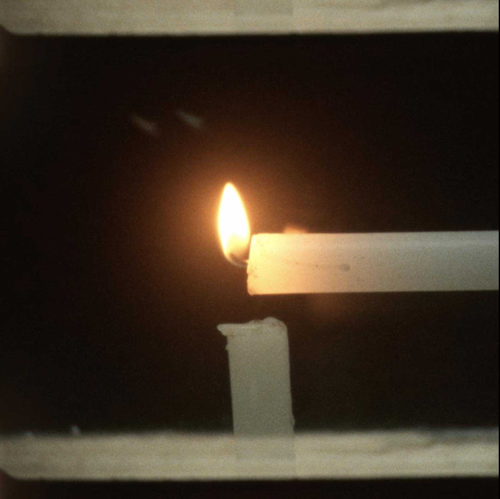 This is a film installation shot on 16mm film and projected inside a box. The most striking scene depicts a candle attempting to light another. In reality, because the image is created through multiple exposure, the two candles never exist in the same place or at the same time. However, on the film as a material, these two moments physically overlap. When the reel comes to an end, the image whites out, shifting from yellow to white. For a brief moment, this goes beyond the image itself and creates the illusion that the box is actually burning. This work attempts to express the act of reaching across different times and distant places, as if trying to touch them.