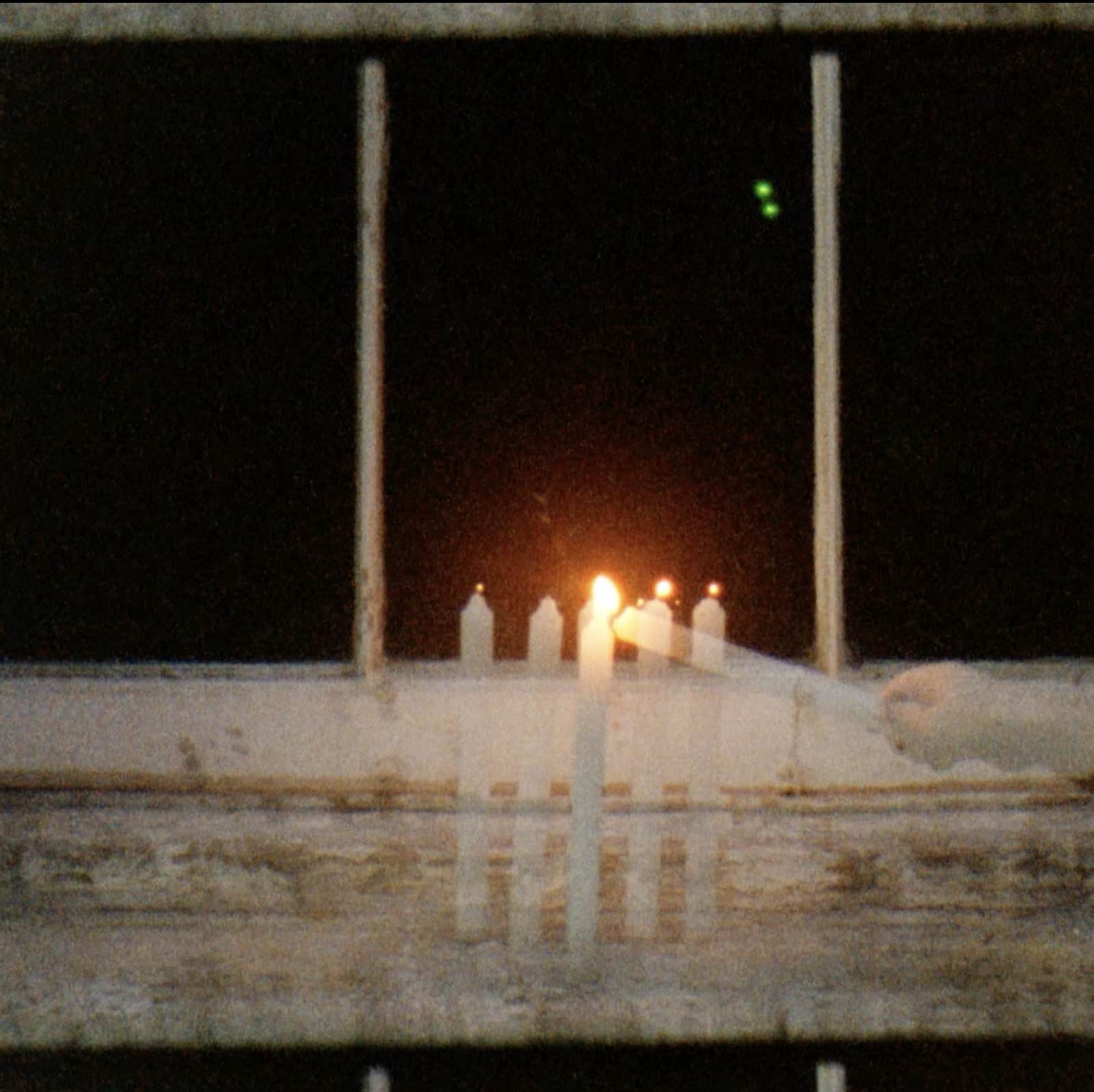映像インスタレーション(16mm カラーリバーサルフィルムに多重露光で撮影し、デジタル化して段ボール箱に投影)16mmフィルムで撮影された映像が、箱の中に投影されたインスタレーション。この映像の中で最も印象的なシーンは、一本のキャンドルが別のキャンドルに火を灯そうとする場面だ。実際には多重露光で撮影されているため、これら二つのキャンドルは同じ場所や時間には存在しない。しかし、フィルムという物質の上では、この二つの瞬間は物理的に重なり合っている。また、1 本のフィルムが終わる時に黄色から白へと画面全体の色調がホワイトアウトする様子は、一瞬これ自体が映像であるという事実を超えて、投影された紙箱自体が燃える様子を想起させる。異なる時間や遠くの場所に手を伸ばし、触れるように表現することを試みた。